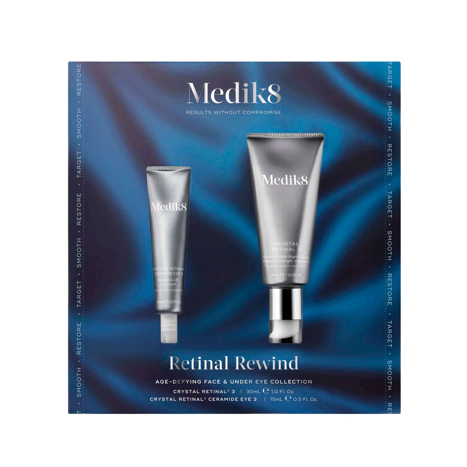 Το σετ Medik8 Retinal Rewind περιλαμβάνει τον best seller ορό Crystal Retinal 3 και την κρέμα ματιών Crystal Retinal Ceramide Eye 3. Ιδανικό για αντιγήρανση, ενυδάτωση και ανανέωση επιδερμίδας.
