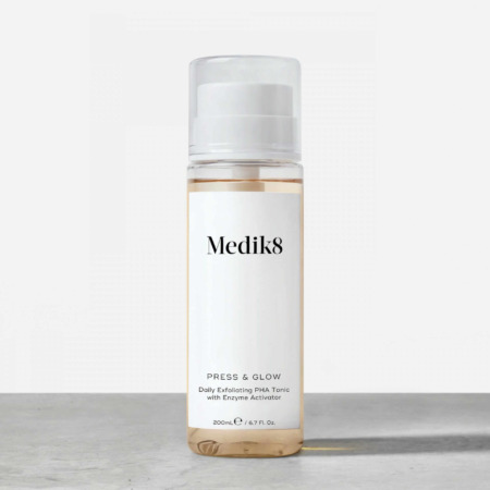 Πιέστε 3 – 4 φορές σε 1 στεγνό cotton pad και εφαρμόστε σε πρόσωπο, λαιμό και ντεκολτέ. ΣΗΜΕΙΩΣΗ: Διατηρήστε την αντλία σας και το διάφανο πώμα της συσκευασίας, τα οποία ταιριάζουν απόλυτα σε ένα Refill Press & Glow. Μην ξεχάσετε να ανακυκλώσετε το άδειο μπουκάλι σας και το κάλυμμα αλουμινίου που καλύπτει το Refill.